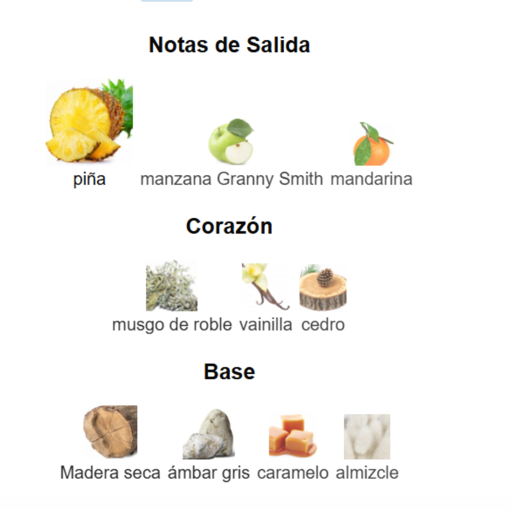 Fondo: caramelo, maderas secas, ámbar gris, almizcle