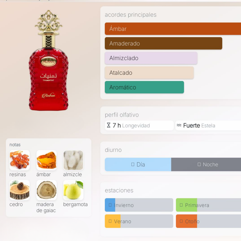 Un perfume equilibrado, con presencia y elegancia, ideal para quienes disfrutan de aromas distintivos que combinan fuerza y sutileza.