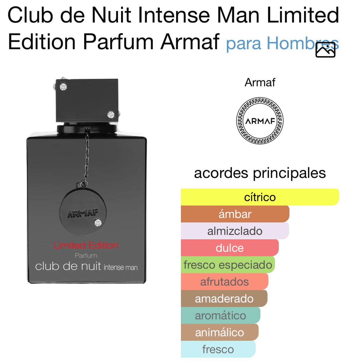 Una fragancia masculina intensa y sofisticada que combina un inicio fresco y afrutado con un toque especiado, un corazón floral elegante y un fondo cálido, amaderado y ligeramente cuero. Ideal para hombres que buscan un aroma poderoso, duradero y versátil, perfecto para la noche o eventos especiales.