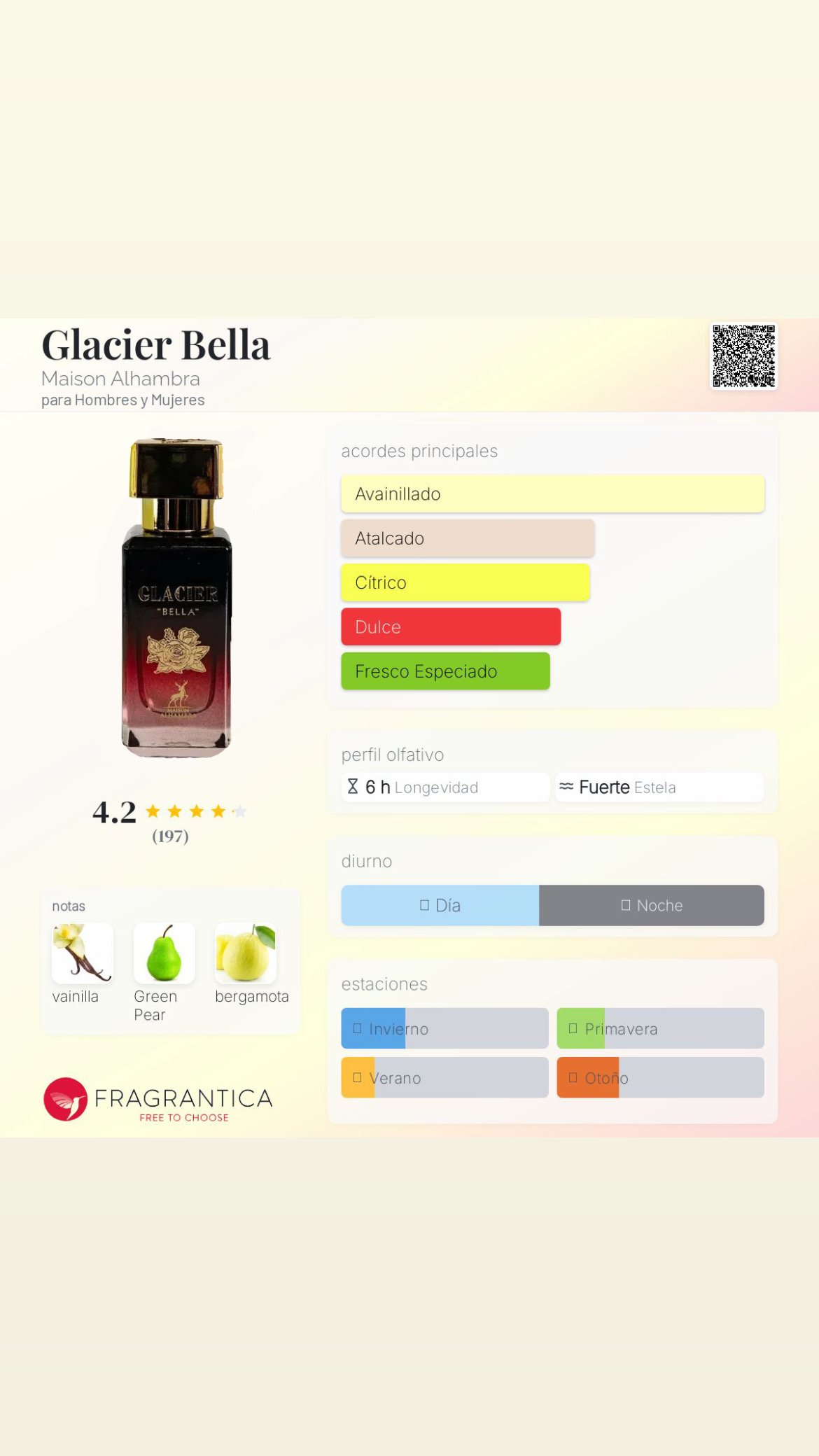 Una fragancia unisex creada para quienes buscan frescura, elegancia y ese toque moderno que marca presencia sin esfuerzo. Glacier Bella combina notas limpias, luminosas y envolventes que se sienten sofisticadas desde la primera pulverización. Perfecta para usar todos los días, pero con la fuerza suficiente para destacar en cualquier ocasión.