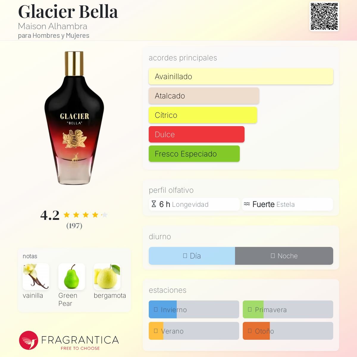 Una fragancia unisex creada para quienes buscan frescura, elegancia y ese toque moderno que marca presencia sin esfuerzo. Glacier Bella combina notas limpias, luminosas y envolventes que se sienten sofisticadas desde la primera pulverización. Perfecta para usar todos los días, pero con la fuerza suficiente para destacar en cualquier ocasión.