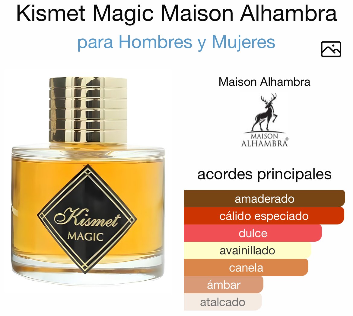 Kismet Magic es una fragancia oriental vainilla unisex intensa, envolvente y absolutamente adictiva, pensada para quienes aman los aromas cálidos y sofisticados.