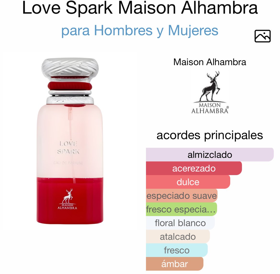 Love Spark es una fragancia oriental floral unisex moderna, vibrante y seductora, pensada para quienes disfrutan de aromas chispeantes con un toque sensual.