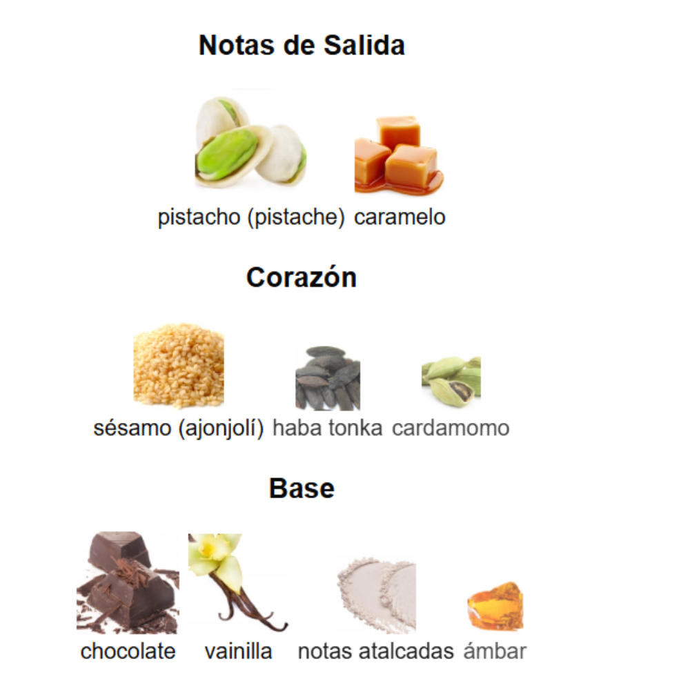 ✔️ Aroma gourmand, dulce, cremoso y sofisticado — perfecto para la tarde/noche, estaciones frías o para quien quiera un sello olfativo apetitoso y distintivo.