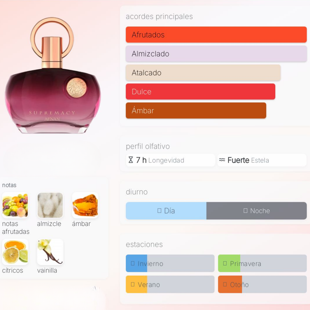 Una fragancia que abraza la feminidad con carácter y elegancia: Supremacy Purple es una composición vibrante que une frutas jugosas con una base cálida y elegante, diseñada para la mujer que quiere destacar sin perder sofisticación.